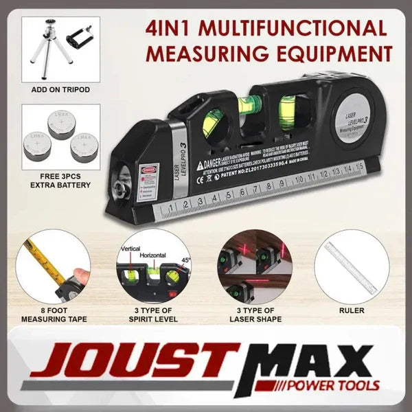Introducing the Fixit Laser Level Pro 3 4in1 Multi-Purpose Measuring Tool With 8 Feet Tape. This versatile tool is ideal for any job that requires a straight line or accurate measurement.